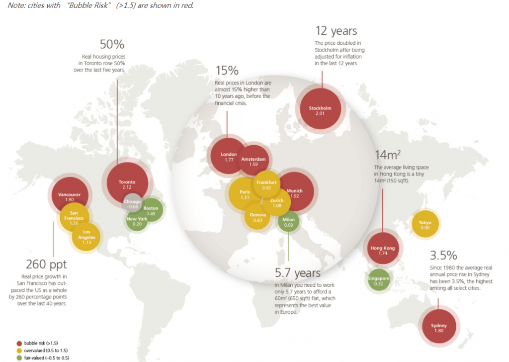 这份报告追踪的是全球房地产泡沫化程度比较高的、以金融为支柱产业的城市。必须提醒的是,报告并不涵盖中国大陆的城市。