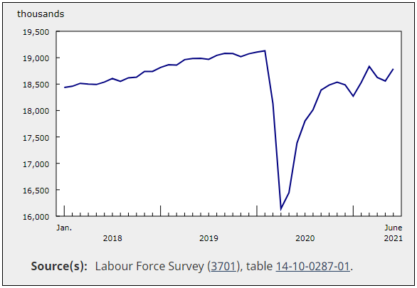 加拿大7月份增加了94,000个工作岗位,比2020年2月的水平低1.3%。增加主要集中在全职工作中,特别是在服务行业。失业率降至7.5%,与3月份的失业率持平。