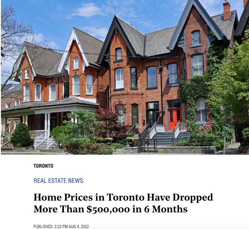 霍格说,多伦多现在是至少 13 年来最惨淡的, 此外,自 3 月以来,活跃房源增加了 58%,多伦多的 MLS HPI 基准价下降了 13%,跌了大约 178,000 元。仅 7 月份就跌了 47,000 加元,而市场只是自由落体了几个月,市场情绪已经急剧转变。